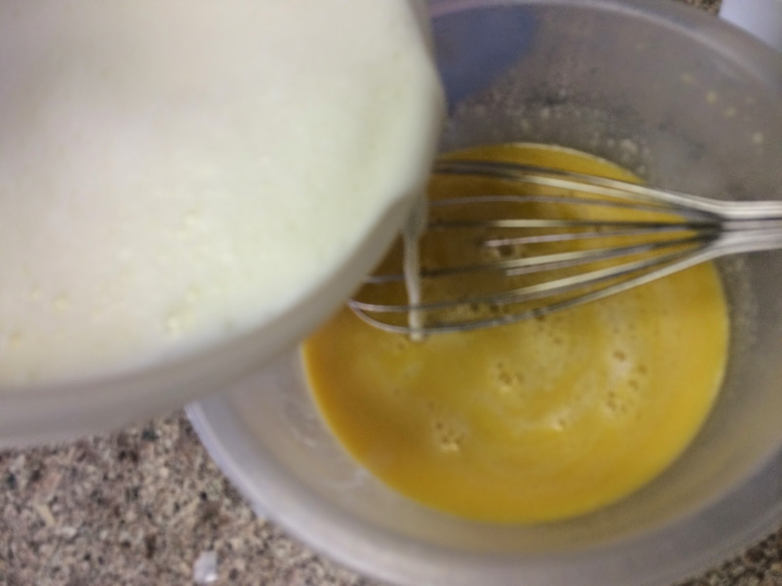 *當白糖全部都熔成糖膏時,準備熱水,加入後快速拌攪