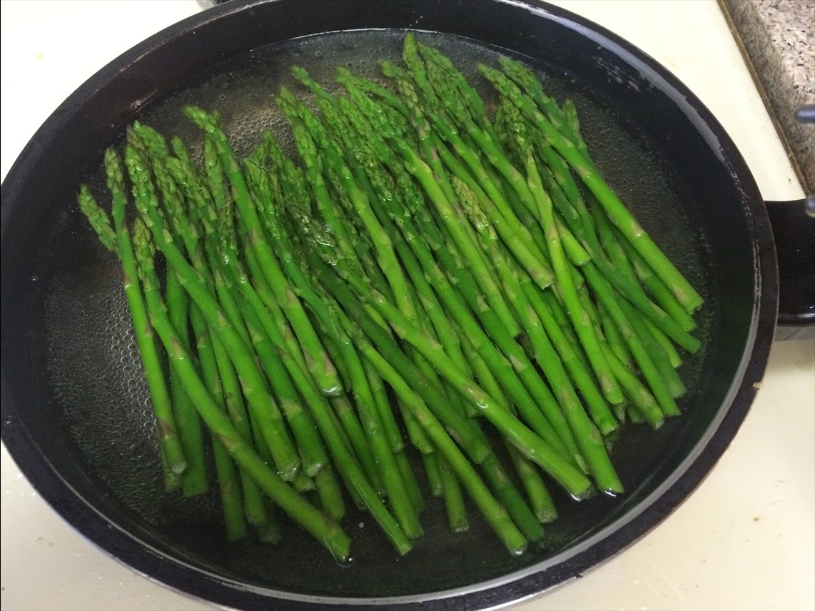 3. 煮一鍋水,水滾後放入蘆筍,繼續以大火加熱,待再滾後繼續滾煮2分鐘即可撈起。