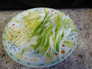 1. 雞胗洗淨,去除黃色及白色的膜,葱、薑、蒜切絲備用。